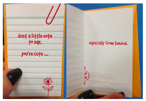 Giving. It doesn’t have to be a $150 bouquet of long stem roses or a box of decadent chocolates. I recently gave someone half a bag of Dove chocolates (I kept the other half) and every time we opened one, we sent the other person the sweet message that was under the wrapper. The sentiment lasted for weeks and those little love messages were even better than the smooth creamy chocolate inside.